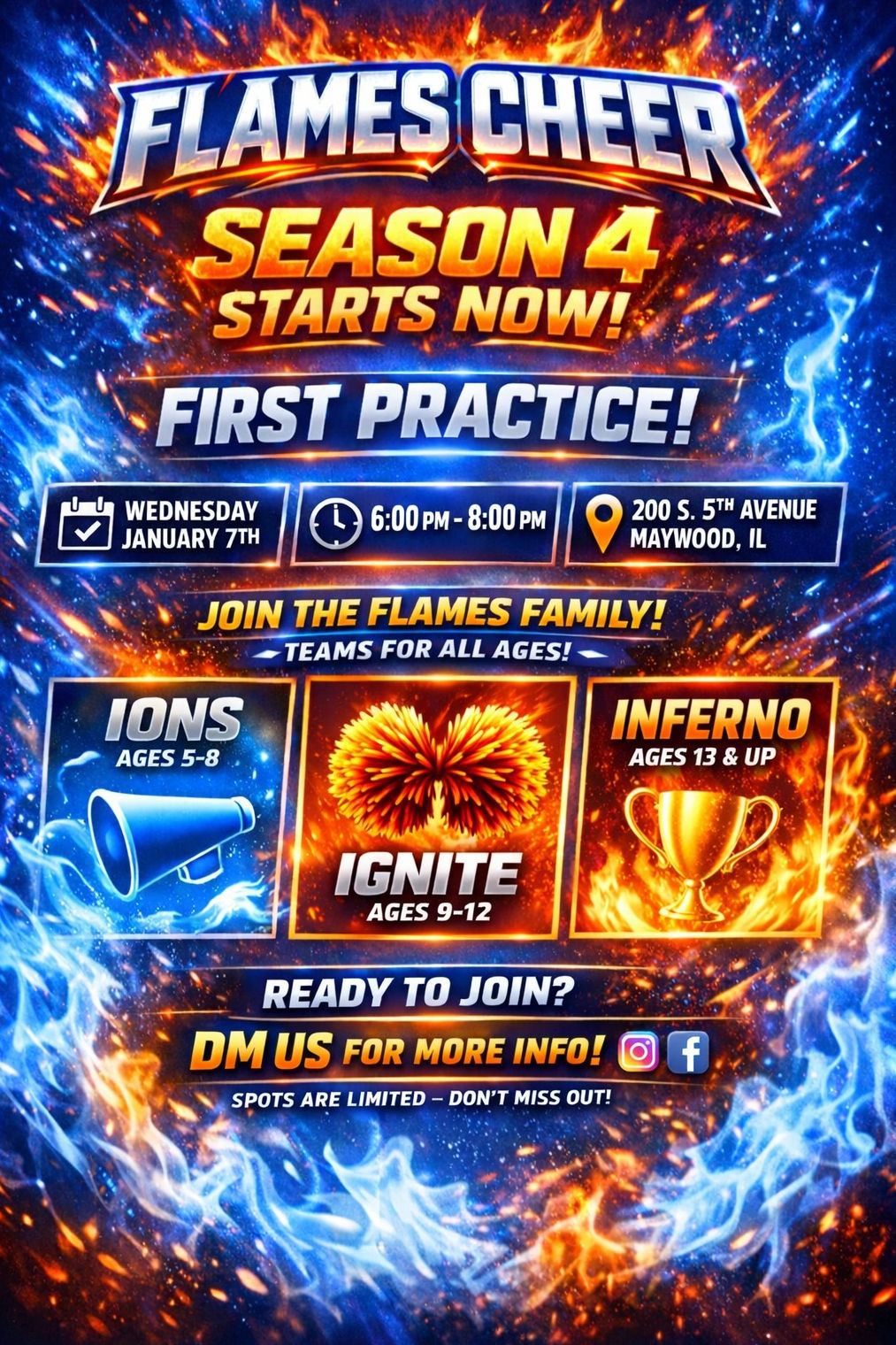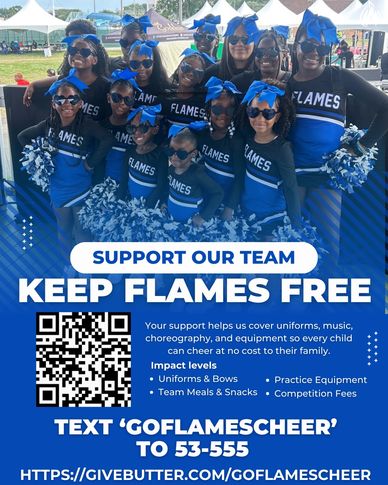 At Flames Cheer, we take pride in transforming all cheerleaders, regardless of skill level, into champions on and off the mat! We have FUN while reinforcing positive qualities, morals, and values. Our high standards push our athletes to be the best!